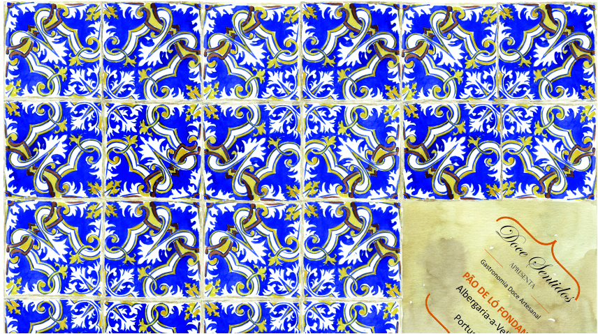 Pormenor de um projeto para a Doce Sentidos em Albergaria. A imagem é uma reprodução em aguarela de azulejos que podemos encontrar em edifícios históricos daquela cidade.