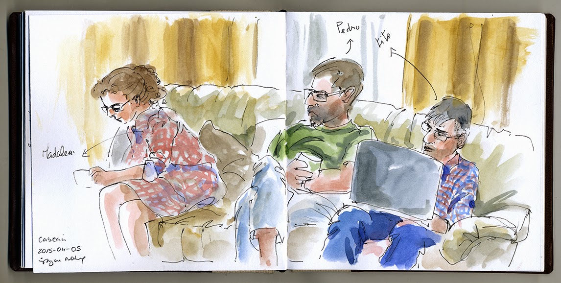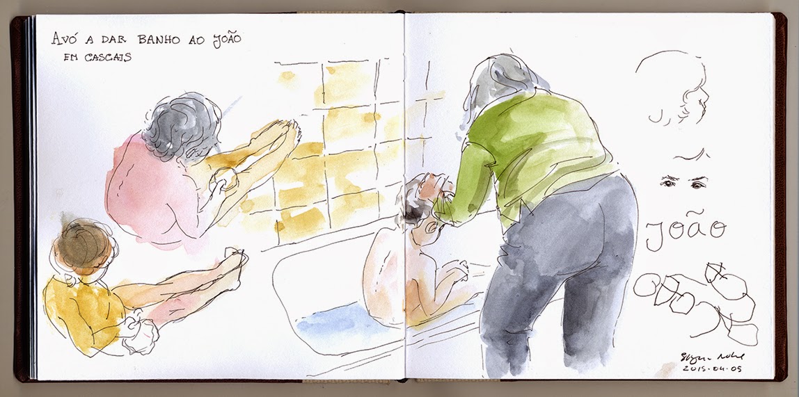 Um dos grandes prazeres que tenho é poder passar algum tempo com os meus sobrinhos, e desta vez aproveitei ao máximo o tempo disponível com o mais pequeno. Ele adora desenhar, emprestei-lhe um diário gráfico e pusemo-nos a fazer desenhos partilhados de objetos, ele desenha e eu pinto, eu desenho e ele pinta! Adoramos os resultados :)