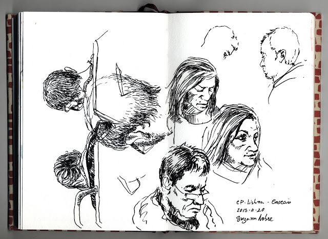 Não tenho tido muita disponibilidade para desenhar nos últimos tempos, mas os rostos da linha de Cascais esses são sempre esperados e registados. No dia 26 deu para um passeio pela Baia de Cascais na praia dos pescadores, e sentei-me um bocadinho a apreciar a vista...